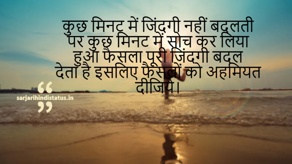 कुछ मिनट में जिंदगी नहीं बदलती पर कुछ मिनट में सोच कर लिया हुआ फैसला पूरी जिंदगी बदल देता है इसलिए फैसलों को अहमियत दीजिये।